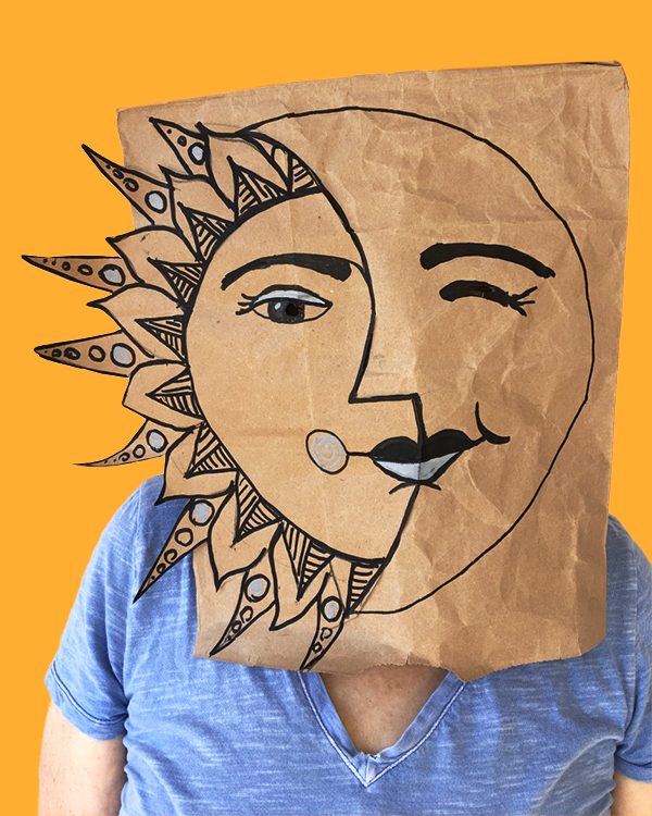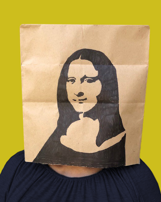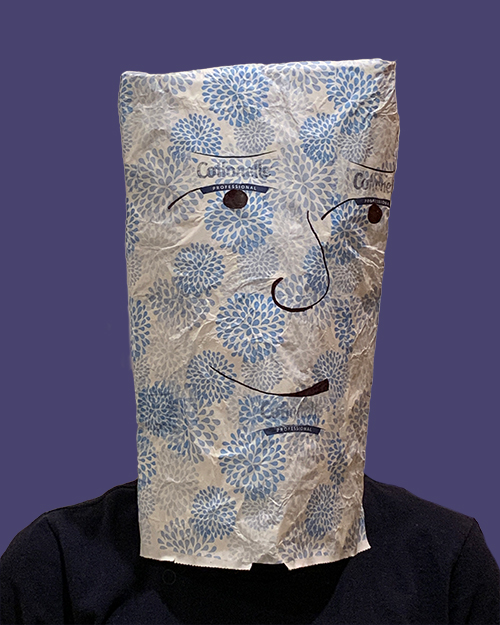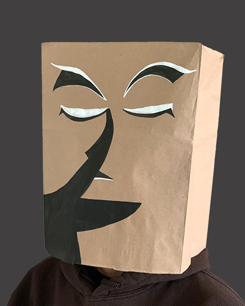 COMouflage: (noun) 1. a strategem used at COM during the stay at home order to make use of those paper grocery bags that you may find piling up  2. a creative take on masks intended as a fun activity to spur imagination and maybe even inspire others to join in!
