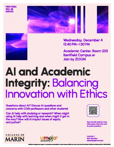 Do you have questions about AI? Do you wonder what your professors think about it? Come join in a discussion with COM professors and students in which you'll learn about the uses and ethics surrounding generative AI.