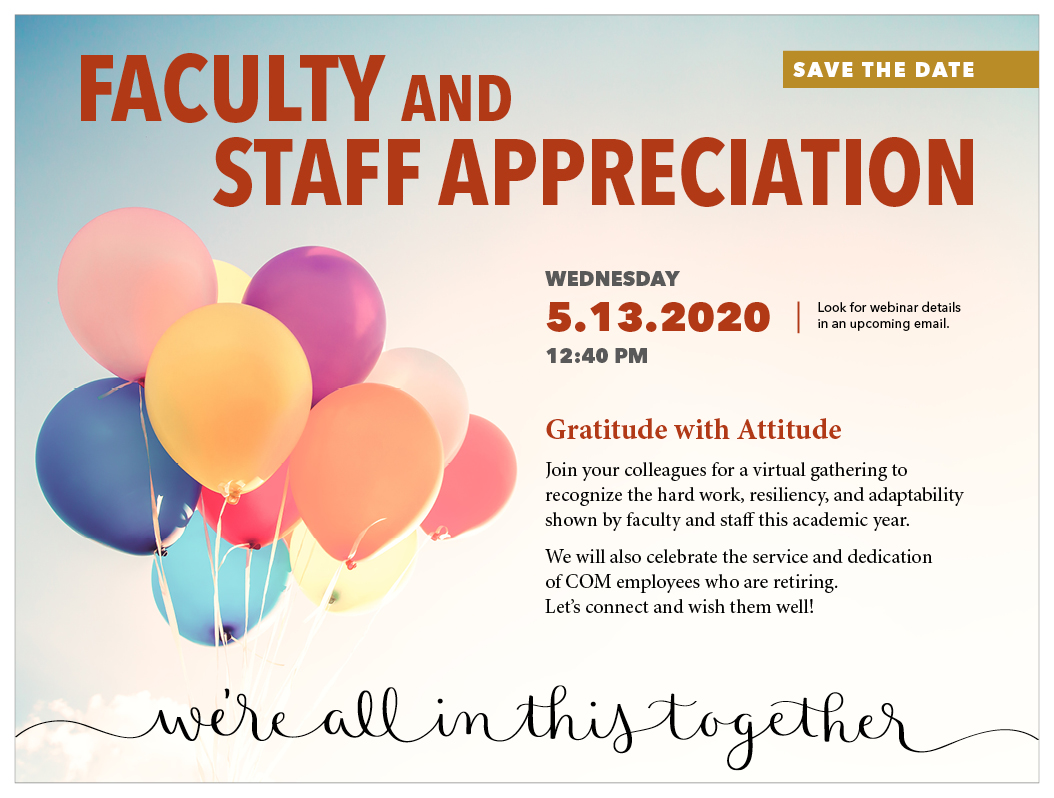 We will also celebrate the service and dedication of COM employees who are retiring. Let’s connect and wish them well!